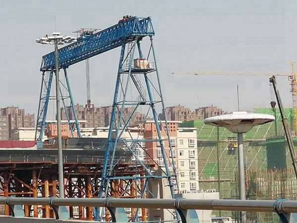 龍門吊租賃,結構簡單,制造安裝方便,自身質量小,主梁多為偏軌箱形架結構。與雙主梁門式起重機相比,整體剛度要弱一些。因此,當起重量Q≤50t、跨度S≤35m時,可采用這種形式。單主梁門式起重機門腿有L型和C型兩種形式。L型的制造安裝方便,受力情況好,自身質量較小,但是,吊運貨物通過支腿處的空間相對小一些。C型的支腳做成傾斜或彎曲形,目的在于有較大的橫向空間,以使貨物順利通過支腳。為了減小架橋機的滑輪率,選擇了不同的臺車結構。這種結構基本上是用新的結實的繩索設計的。鋼絲繩直徑為44厘米,支撐強度可達27噸。當這種類型的繩索用于架橋機時,由于減少了使用的零件數量,可能有必要確保大大減少手推車的重量和制造工作量。獨特之處在于,架橋機出租,具有大起重能力的架橋機具有更高的起升高度。減輕重量和減少制造工作量更為顯著。